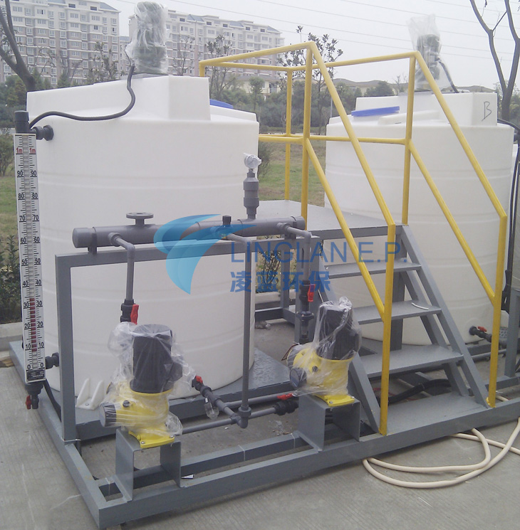 3、水處理加藥裝置。在水處理過程中向自來水、廢水、污水中加藥。主要用于有關(guān)給排水處理、環(huán)保等工藝流程。如自來水廠、賓館、飯店、游泳池、污水處理廠等。